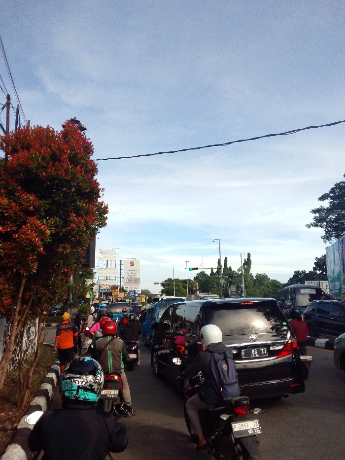 - "The image depicts a congested urban road in Bogor, Indonesia, under a partly cloudy daytime sky" by FM-3DGA03, licensed under CC BY 4.0