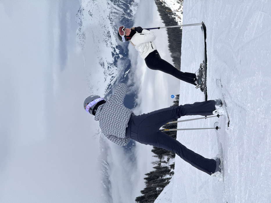 - "Two individuals in ski gear are captured on a snow-covered ski slope in Courchevel, France, under an overcast sky with snow-capped mountains and evergreen forests visible in the background" by FM-KEr2A3, licensed under CC BY 4.0