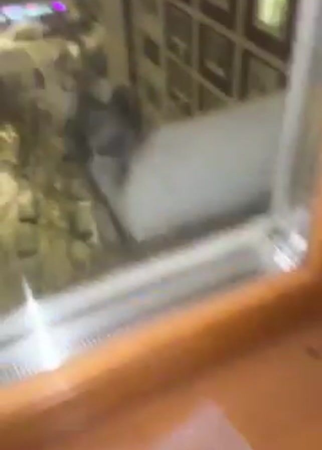 A woman is sleeping in a bed. She is holding a purple object in her hand. The camera pans to a window with a view of a city covered in snow. The window is partially obscured by frost or condensation. Buildings are visible in the background.
