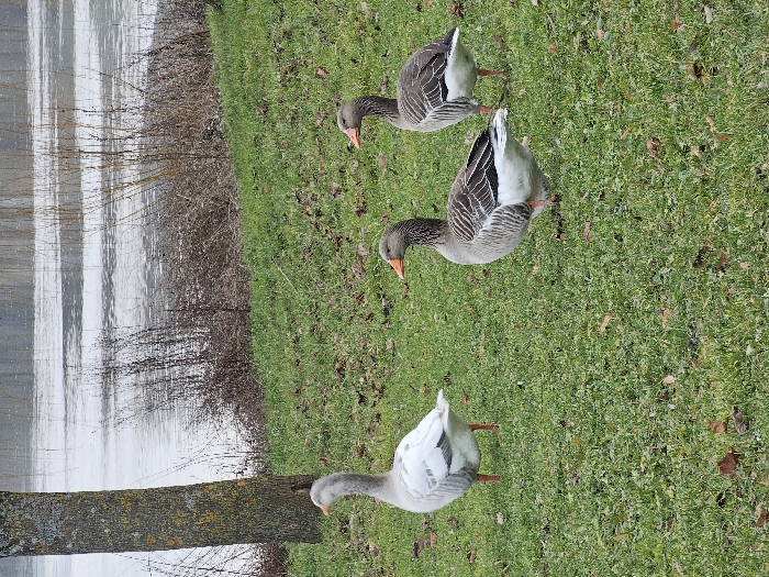 - "The scene, located in Bech-Kleinmacher, Luxembourg, features three geese on a grassy embankment next to a body of water" by FM-n22Rc2, licensed under CC BY 4.0