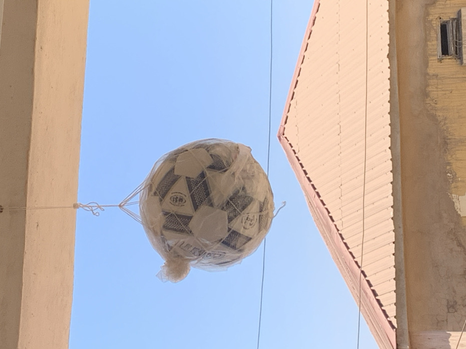 - "The image depicts an outdoor scene in Bukuru, Nigeria, dominated by a cluster of multiple soccer balls suspended in mid-air" by FM-SKIQH3, licensed under CC BY 4.0