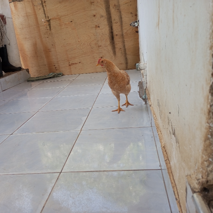 - "A light brown chicken stands centrally on a clean, light-colored tiled floor in what appears to be an enclosed outdoor or semi-enclosed area within Mahiakalo ward, Kenya" by FM-iEAFO2, licensed under CC BY 4.0
