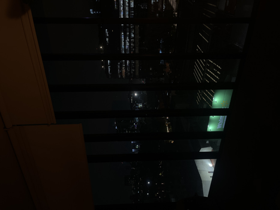 - "This image presents a nighttime urban scene viewed from an elevated interior perspective, looking out through a window with dark vertical mullions" by FM-lAJLT2, licensed under CC BY 4.0