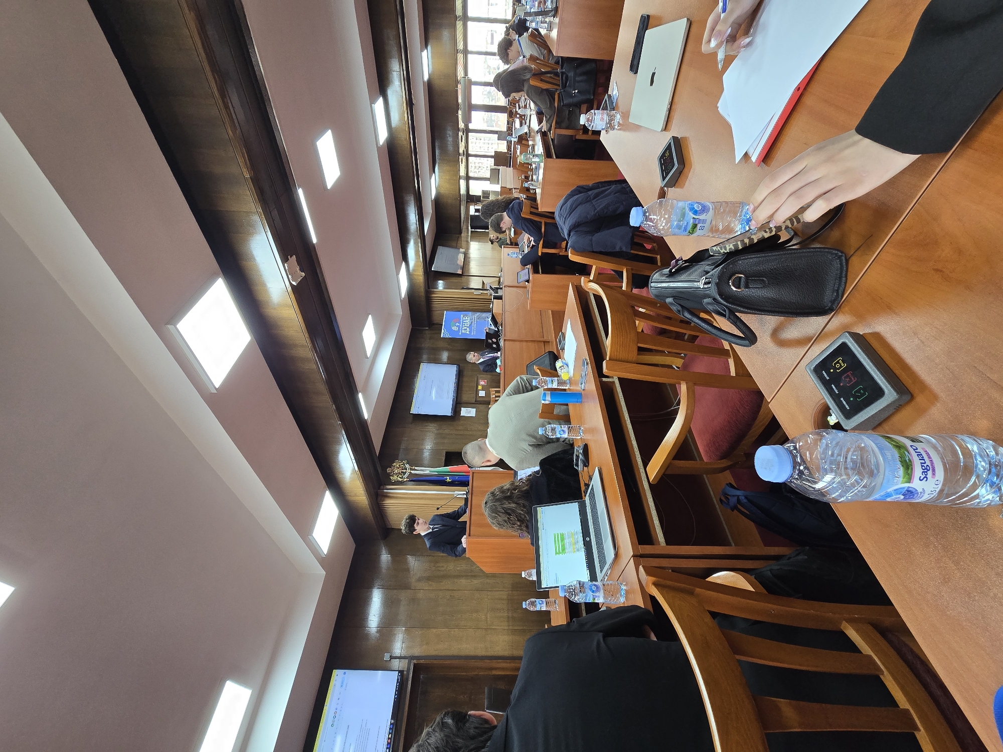 This image depicts a formal meeting or conference taking place in a large chamber within a governmental or administrative building in Ruse, Bulgaria, likely the Ruse Municipality Building or Regional Administration