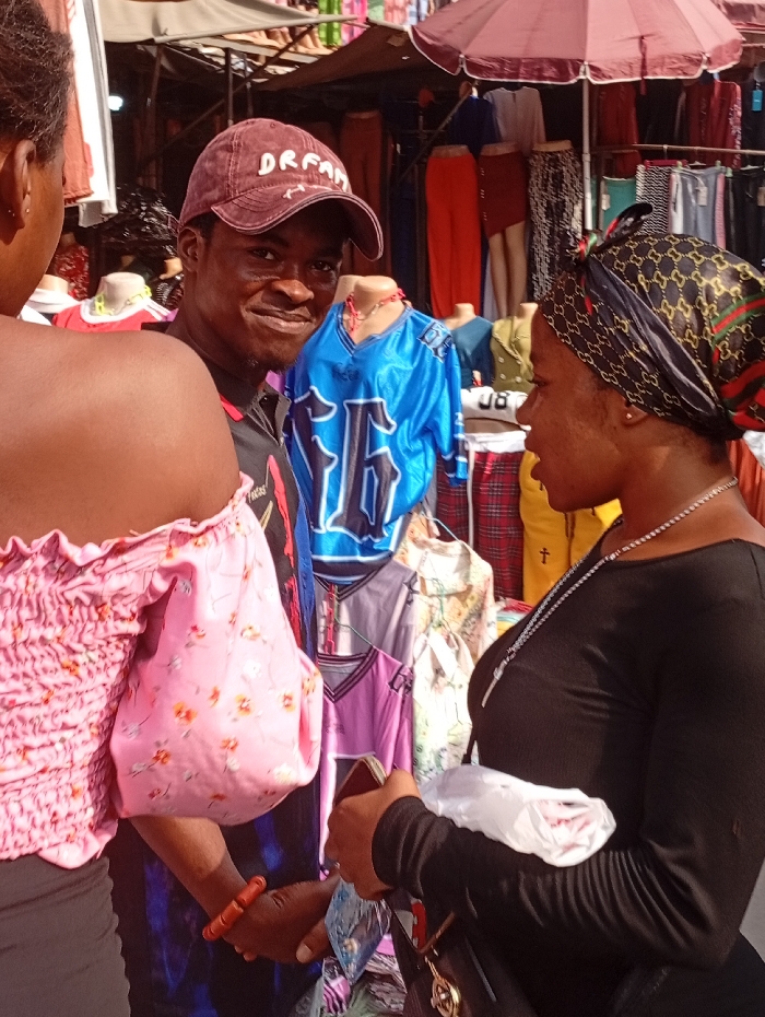 This image captures an outdoor market scene in Fegge, Nigeria, under daylight conditions