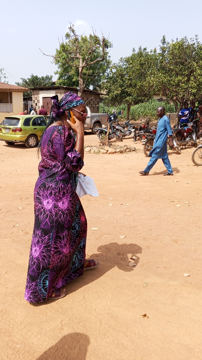 The image depicts an outdoor scene in Egbedi, Nigeria, on a clear, sunny day with bright overhead light casting distinct shadows
