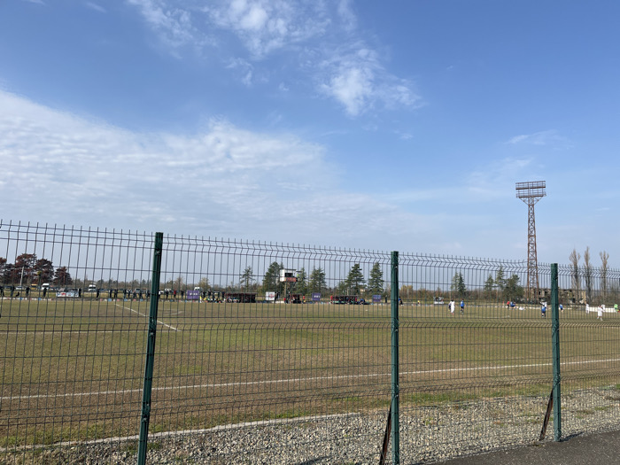 The image displays an outdoor sports field, identified as being in the city of ქალაქი ლანჩხუთი, Georgia