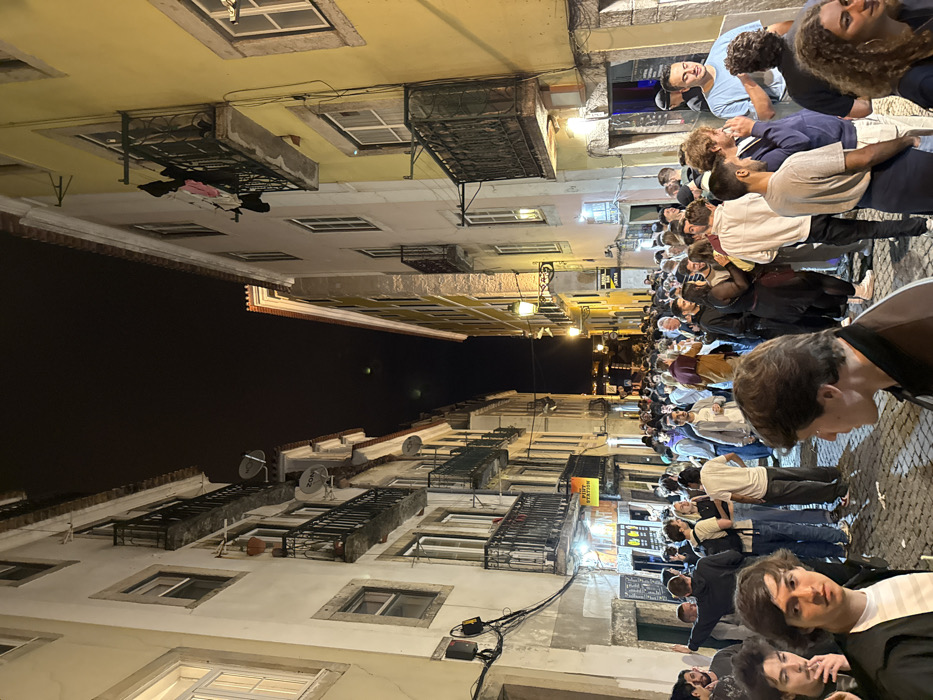 - "The image displays a densely crowded, narrow cobblestone street at night in Lisbon, Portugal, specifically in the Bairro Alto neighborhood" by FM-4PcBo1, licensed under CC BY 4.0
