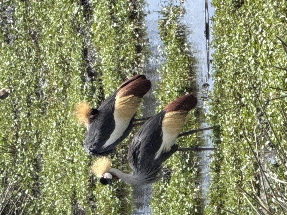 - "The scene depicts two Grey Crowned Cranes (Balearica regulorum) standing in a wetland environment within Mti Mmoja, Tanzania" by FM-ohOUo2, licensed under CC BY 4.0