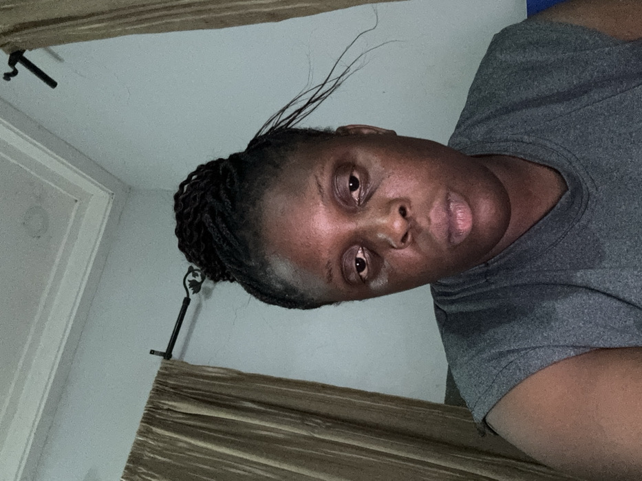 A woman with braided hair pulled back into a bun looks directly at the camera
