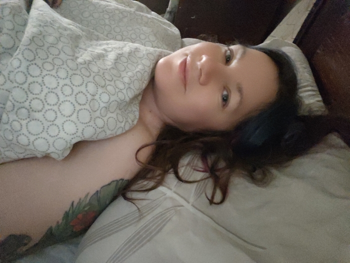 - "A woman lies in bed, partially covered by a patterned duvet" by FM-P9SdV2, licensed under CC BY 4.0