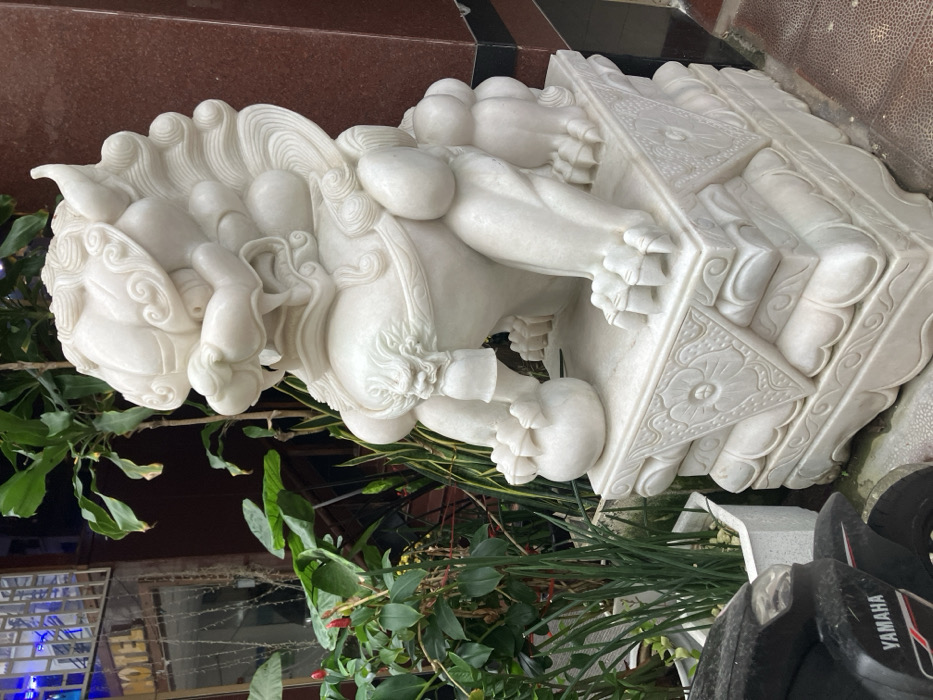 - "A white marble guardian lion statue stands prominently in an outdoor urban environment within Ngũ Hành Sơn Ward, Vietnam" by FM-iSxzL2, licensed under CC BY 4.0