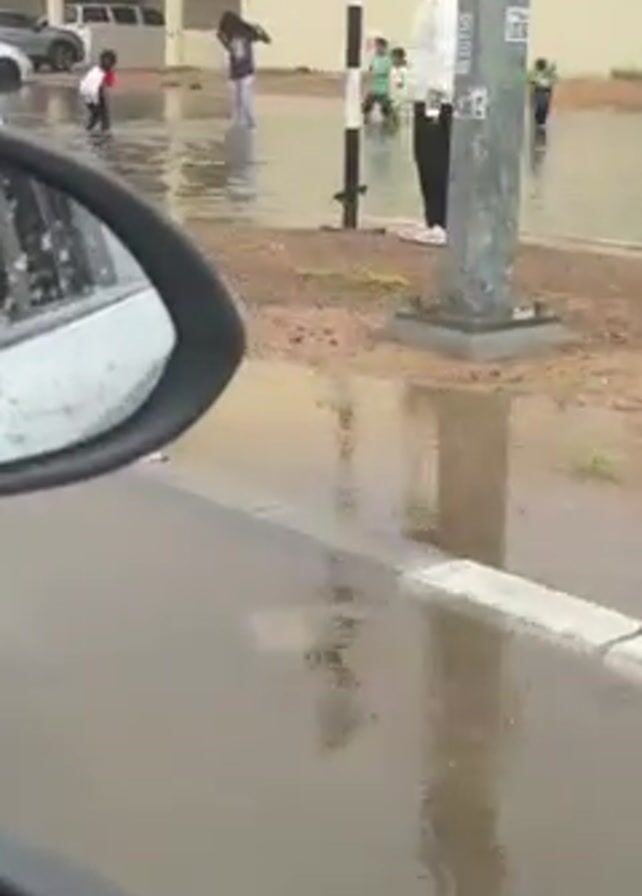 flooded street, likely in a residential area
