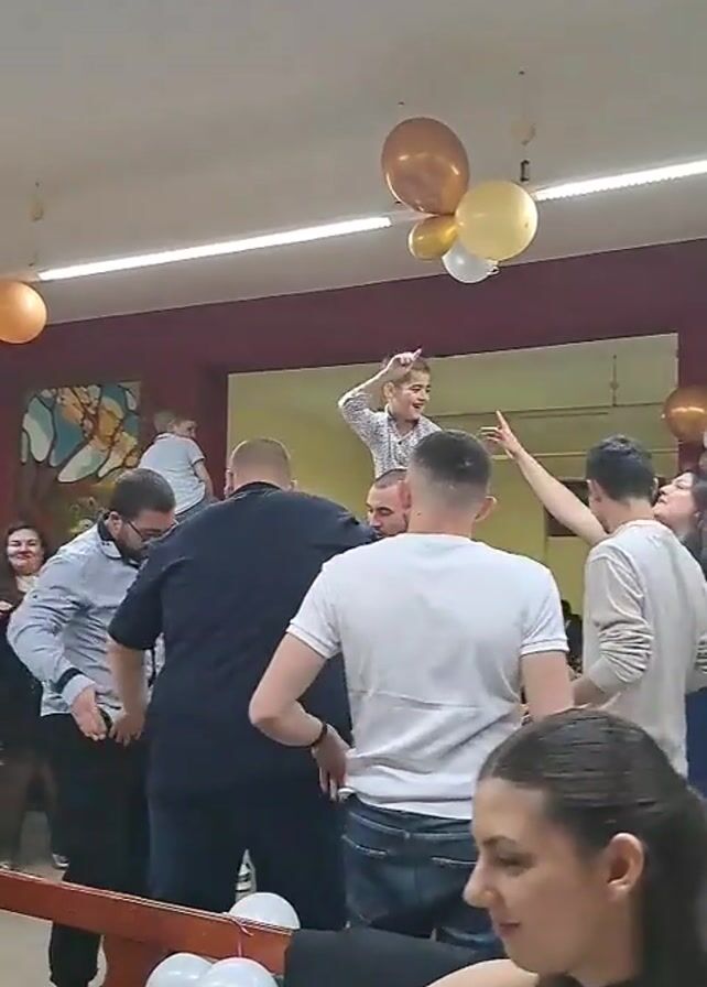 The video captures a lively indoor gathering, possibly a celebration, with multiple individuals dancing and enjoying themselves