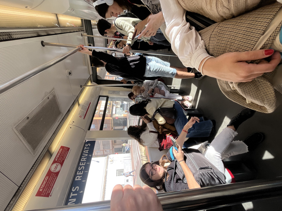 - "The image displays the interior of a public transit vehicle, identified as a tram or metro train, operating in Burjassot, Spain, during daylight hours" by FM-pNWBR2, licensed under CC BY 4.0