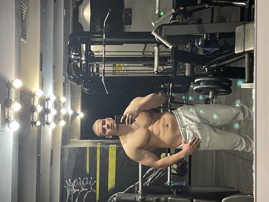 - "A shirtless, muscular male subject with a shaved head is depicted in a full-length mirror selfie, taken inside a gym located in Tsarevo, Bulgaria" by FM-rewbj2, licensed under CC BY 4.0