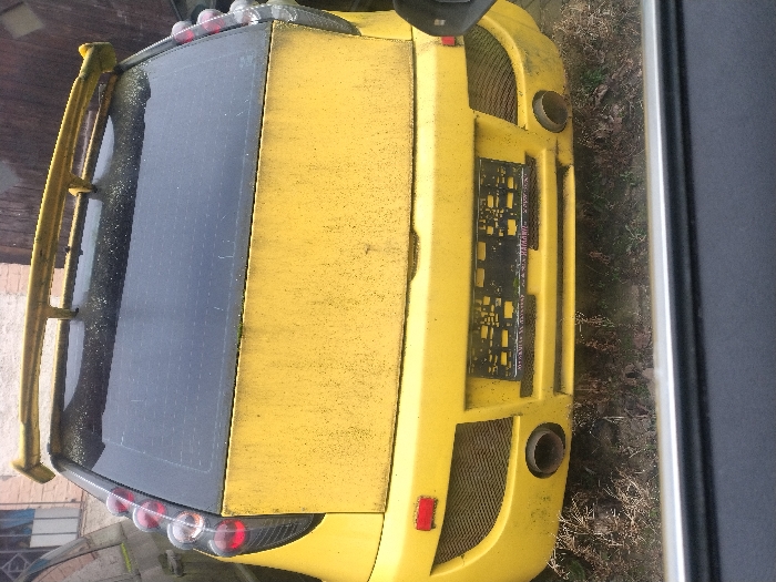 - "The image displays the rear view of a heavily soiled, modified yellow hatchback vehicle, located in the city of Perl, Germany" by FM-M4lpO2, licensed under CC BY 4.0