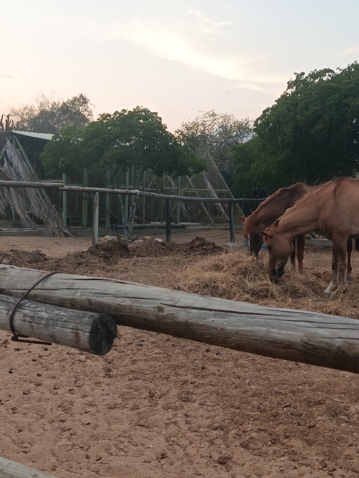 - "The scene depicts an outdoor enclosure for animals in Guayacancito, Venezuela, under a light, overcast sky, suggesting early morning or late afternoon" by FM-U9fau1, licensed under CC BY 4.0