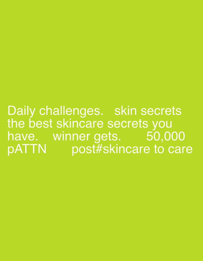 The image displays white sans-serif text centered on a solid lime green background. The text outlines a "Daily challenges" initiative focused on "skin secrets." It states, "the best skincare secrets you have. winner gets. 50,000 pATTN post#skincare to care." No people, physical objects, or specific environmental features beyond the colored background are depicted. The scene is a digital graphic, not a photograph of a physical location in Alaguntan, Nigeria; however, the challenge described within the text implies an activity potentially originating from or targeting an audience in such a region. The "50,000" likely refers to a monetary prize in Nigerian Naira.