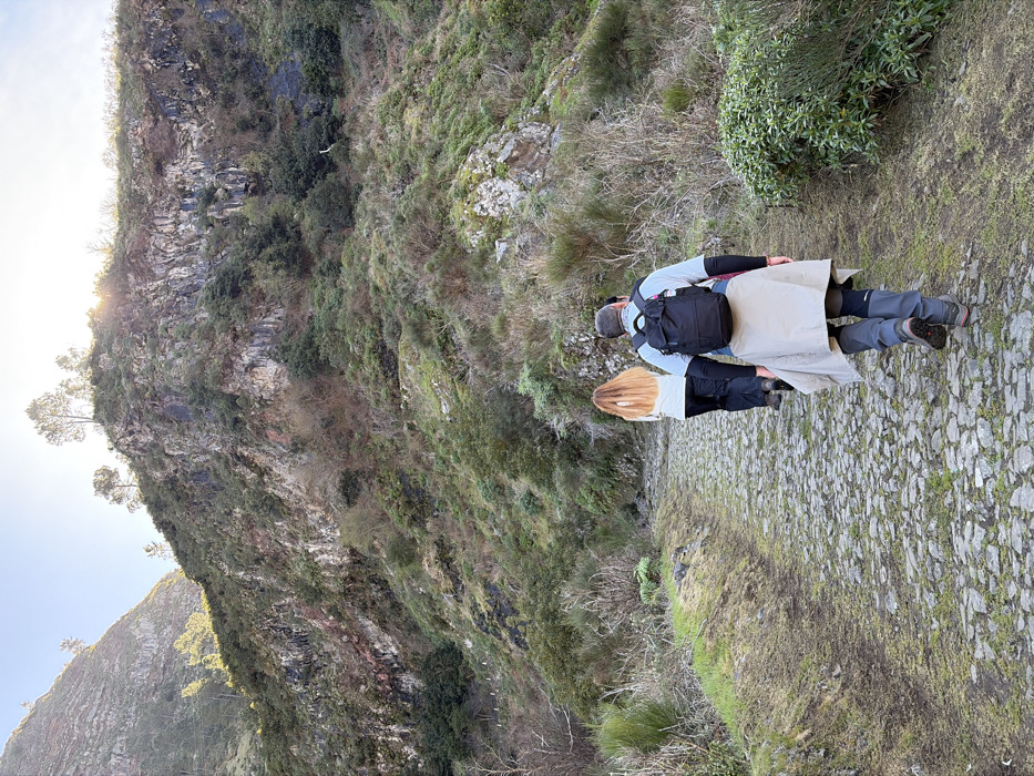 - "The scene depicts two individuals, an adult male and an adult female, walking uphill on a cobblestone path within a mountainous region of Câmara de Lobos, Portugal" by FM-R7RZz2, licensed under CC BY 4.0