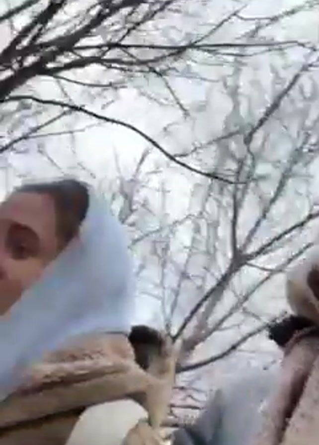 - ". The video shows a woman outside in what appears to be a cold, overcast environment, potentially winter or early spring. The woman is wrapped in a scarf and wearing a jacket. She appears to be speaking to someone off-camera. The background features bare trees, suggesting a time of year when leaves are absent. The camera seems to be handheld, and there is some motion as the woman moves or talks. Another person can be seen very briefly in the background." by FM-MRhzP2, licensed under CC BY 4.0