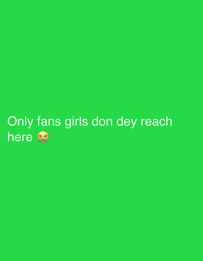 The image displays white text and an emoji centered against a solid green background. The text reads: "Only fans girls don dey reach here". Immediately following the word "here" is a loudly crying face emoji (ðŸ˜). No identifiable physical location, individuals, subjects, objects, actions, or interactions are depicted within the image that would allow for specific identification within Iranla, Nigeria, or any other geographical area. The image content is purely textual and emblematic.