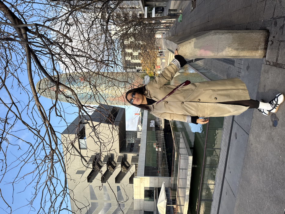 - "An outdoor, eye-level photograph captures a woman standing on a paved walkway in Plaça de les Glòries Catalanes, Barcelona, Spain" by FM-zzfgm1, licensed under CC BY 4.0
