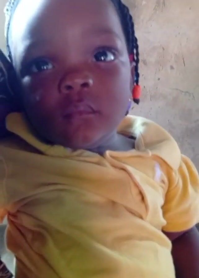 close-up of a baby with dark hair and skin wearing a yellow collared shirt. The baby's expression is mostly neutral, looking slightly off to the side. Some type of religious singing can be heard in the background. The background appears to be indoors with a wall behind the baby.