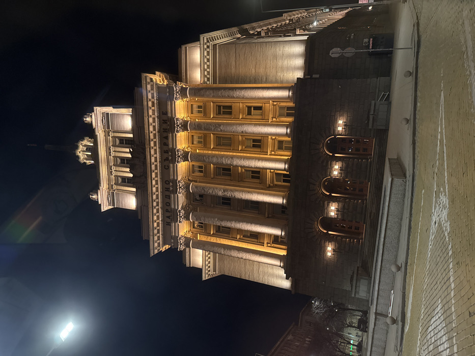 - "The image displays the National Assembly building in Sofia, Bulgaria, during nighttime" by FM-DQUFo2, licensed under CC BY 4.0