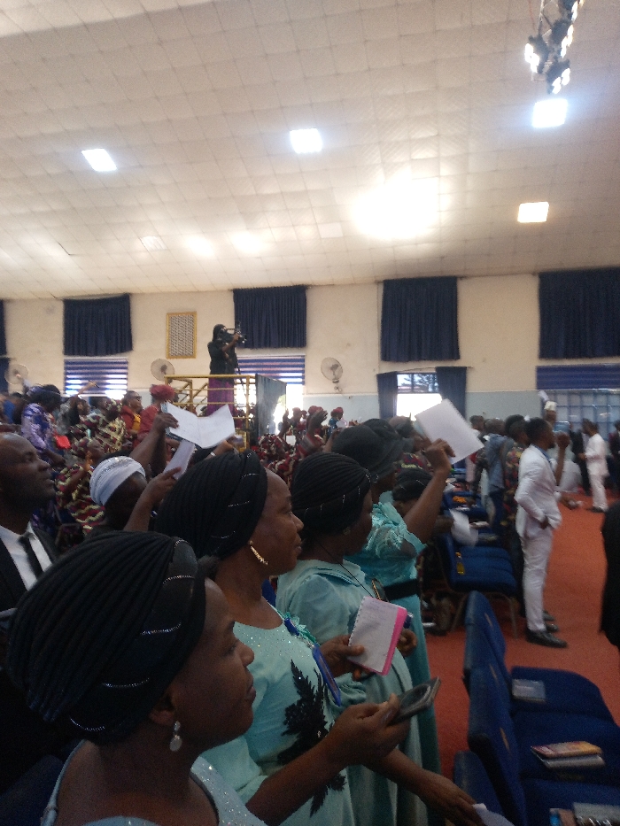 The image depicts a crowded indoor event occurring within a venue located in Television, Nigeria