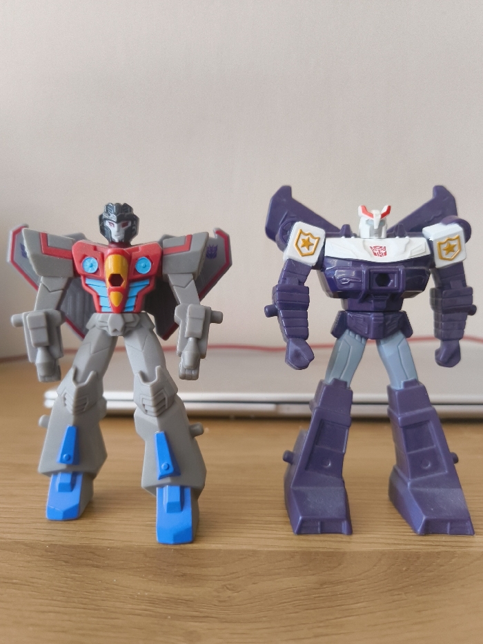 - "Two plastic Transformers action figures are displayed standing upright on a light brown wooden surface in Sofia, Bulgaria" by FM-JKINn1, licensed under CC BY 4.0