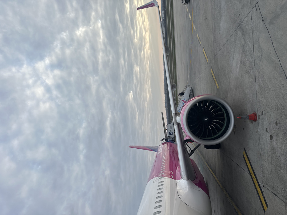 - "The image depicts a Wizz Air Airbus A320 family aircraft, identifiable by its white fuselage and magenta tail/rear section, parked on a concrete airport tarmac" by FM-o7l9N2, licensed under CC BY 4.0
