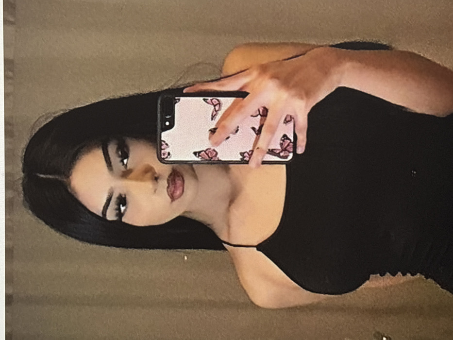 - "A woman with long dark hair poses in front of a mirror, holding a smartphone with a pink butterfly-patterned case" by FM-5oJwf2, licensed under CC BY 4.0
