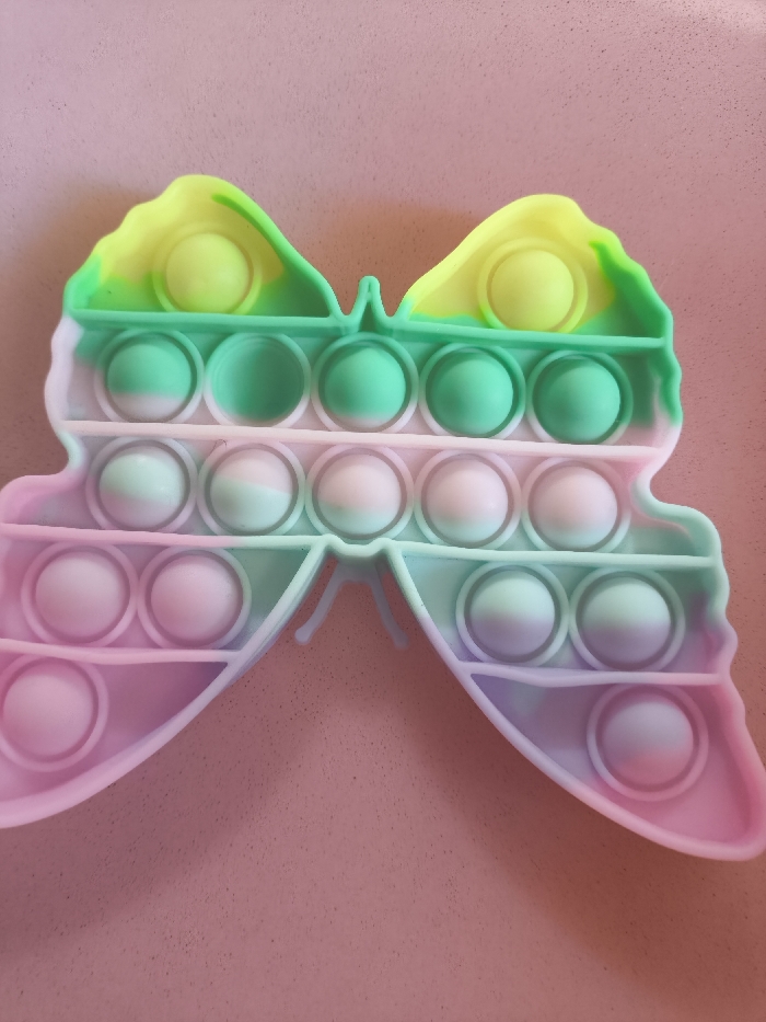 - "A butterfly-shaped silicone pop-it fidget toy is centrally depicted against a solid, light pink background" by FM-QZ3z23, licensed under CC BY 4.0
