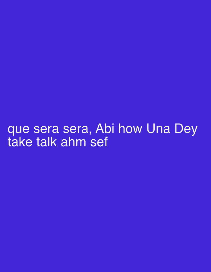 A solid purple background displays a white text phrase "que sera sera, Abi how Una Dey take talk ahm sef