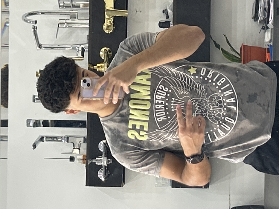 - "A young male is depicted taking a mirror selfie inside what appears to be a plumbing supply store or showroom in Al-Yarmuk, Syria" by FM-EsaHu1, licensed under CC BY 4.0