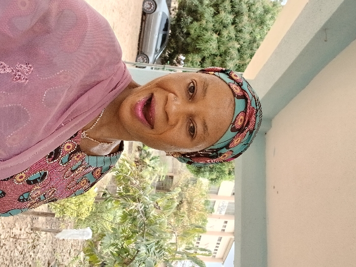 An adult female is depicted in a close-up, front-facing shot, outdoors in Shaba, Nigeria
