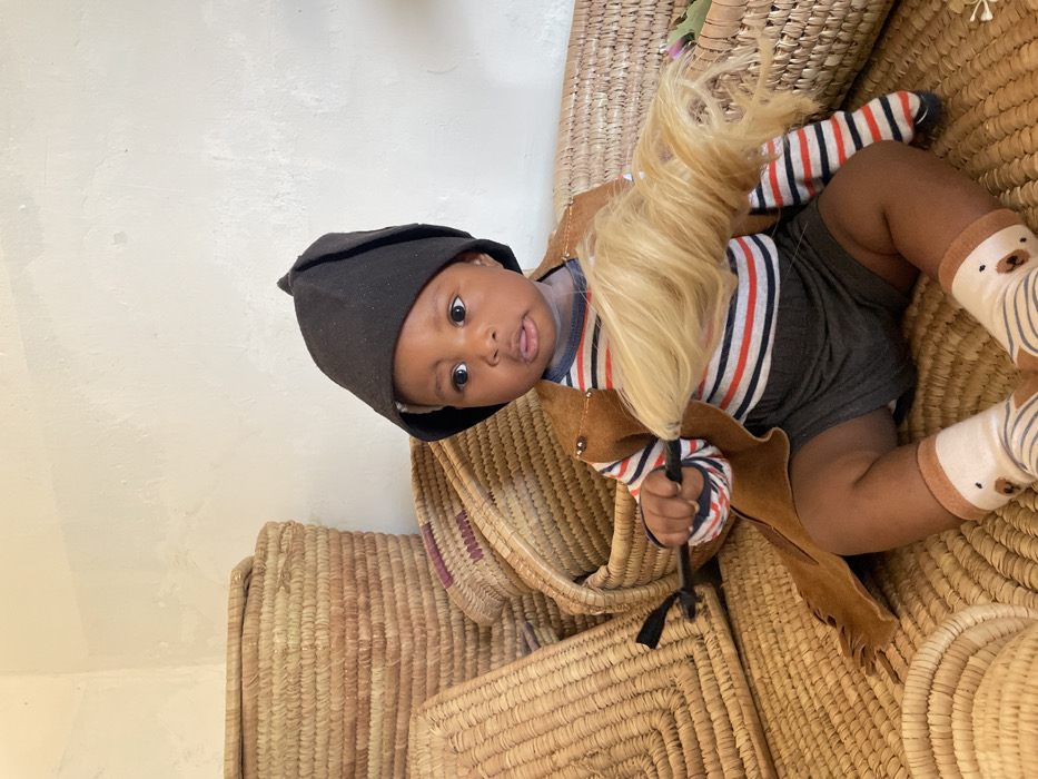 - "An infant is seated upright amidst a collection of woven straw baskets in an indoor setting in Jos, Nigeria" by FM-2cWZX2, licensed under CC BY 4.0
