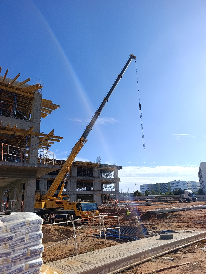 - "This image captures an active construction site in Salé, Morocco, under a clear blue sky with a faint atmospheric streak in the upper left quadrant" by FM-mZ7ZH3, licensed under CC BY 4.0