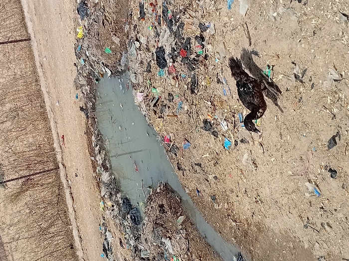 The scene, located in Ayama, Nigeria, depicts an outdoor area characterized by extensive environmental degradation