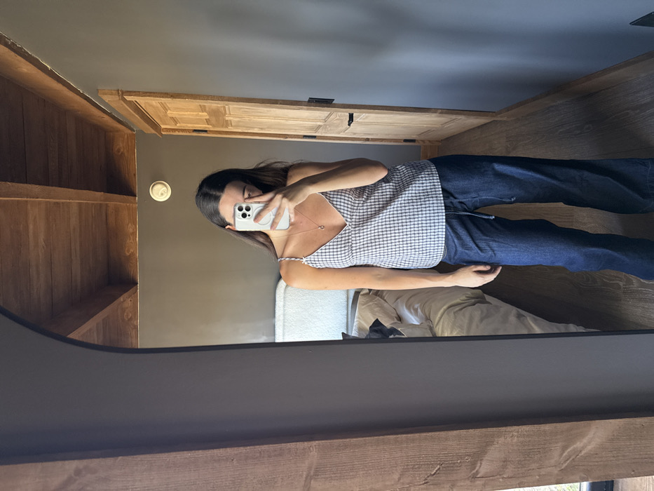 - "A young adult female is depicted in a full-length mirror selfie within a room in Otego, United States" by FM-6nxPk2, licensed under CC BY 4.0