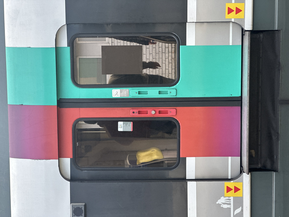 - "A closed train door from an RER B line train is observed, stationary at a platform in Orsay, France" by FM-iKko62, licensed under CC BY 4.0