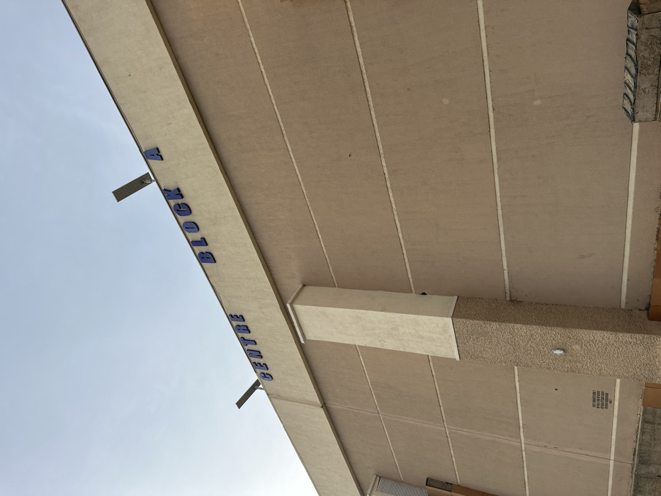 - "The image displays a low-angle view of a building's exterior facade, identified as "CENTRE BLOCK A," located in Unguwar Rimi, Nigeria" by FM-NWeep2, licensed under CC BY 4.0