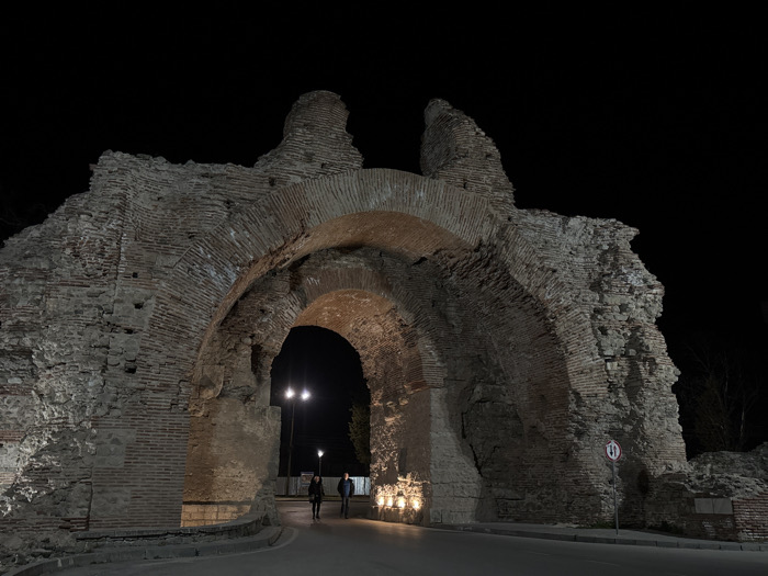 - "The image displays the ancient Roman "Camel Gate" (Kamilite) in Hisarya, Bulgaria, observed at night" by FM-7E7373, licensed under CC BY 4.0