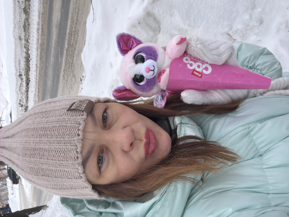 - "An outdoor, mid-shot photograph depicts an adult female holding a plush toy on a snow-covered street in the city of Chaikovsky, Russia, under overcast daylight conditions" by FM-82K7o1, licensed under CC BY 4.0