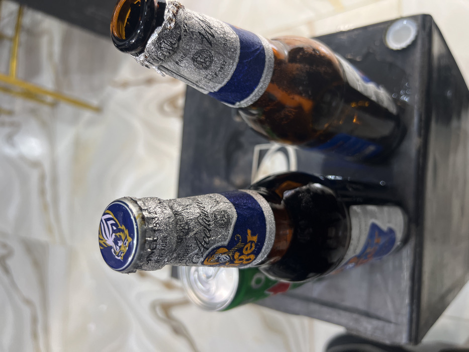 - "The scene depicts an indoor setting in Awka, Nigeria, where three beverage containers rest on a dark, rectangular surface" by FM-SykN53, licensed under CC BY 4.0