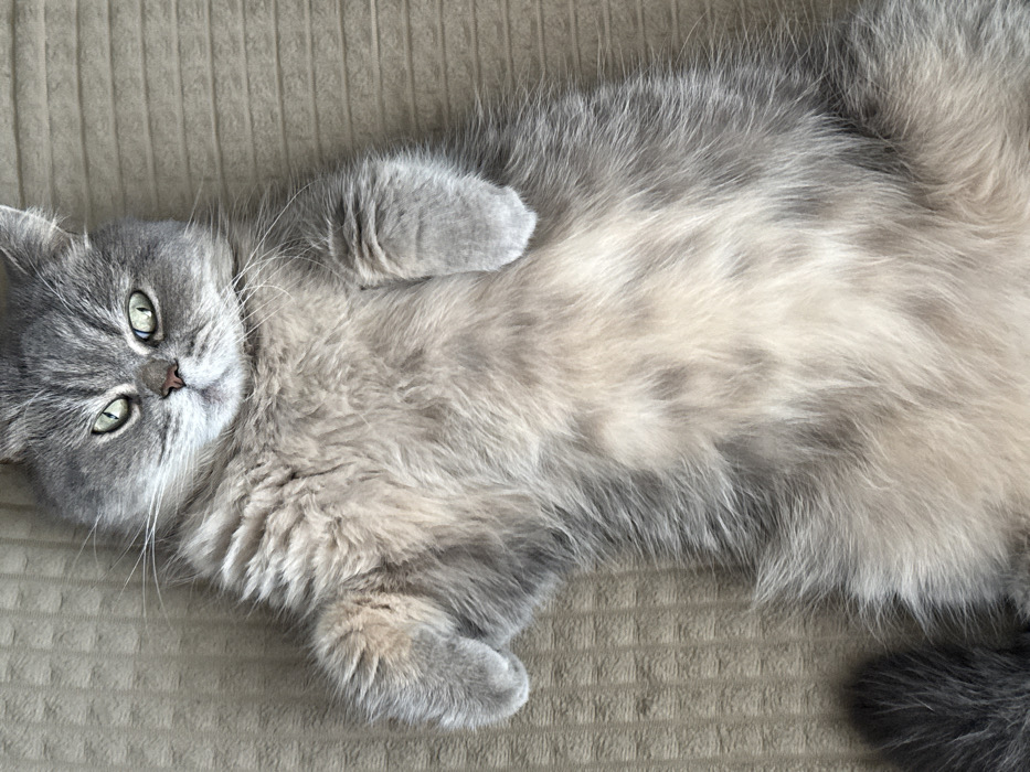 - "A domestic cat is depicted lying supine on a light brown, ridged textile surface" by FM-zk5wI2, licensed under CC BY 4.0