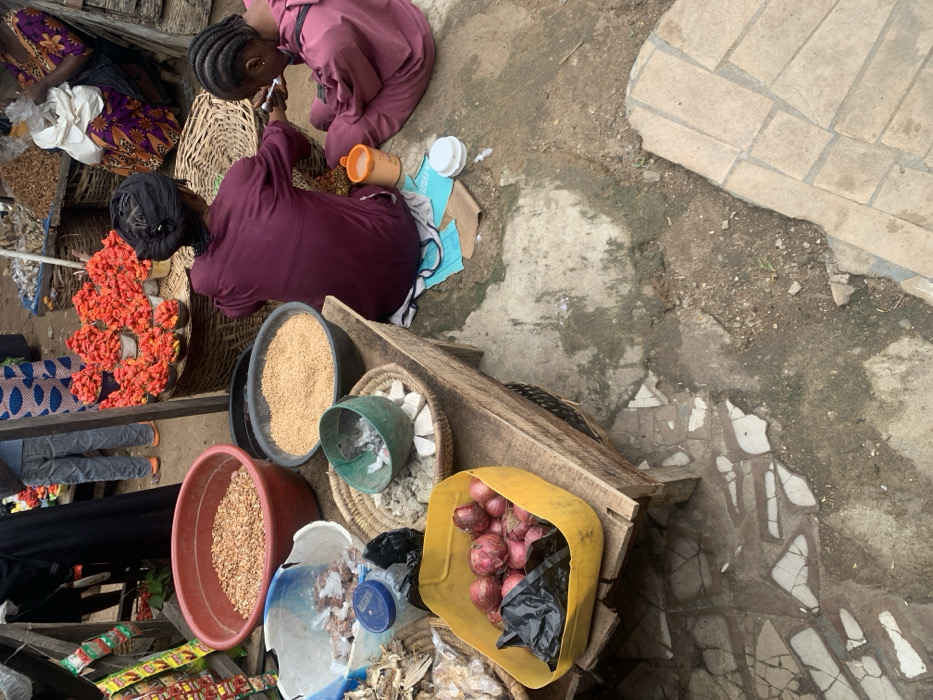The image depicts an outdoor market scene in Zango-ndaji, Nigeria
