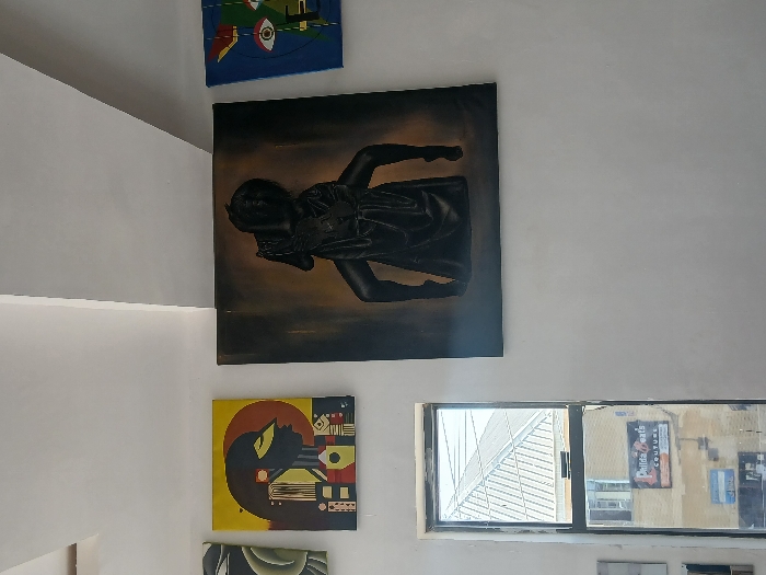 The image depicts an interior room, likely an art gallery or a private residence, located in Gura Top, Nigeria