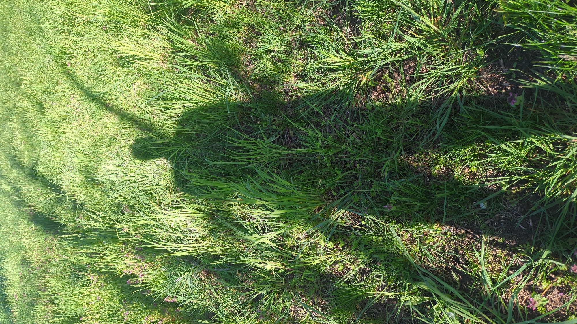 patch of tall, green grass with a dark shadow cast across it